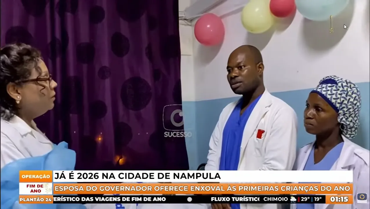 A entrada de 2026 na província de Nampula foi assinalada com um gesto de solidariedade no Hospital Central de Nampula, onde nasceu a primeira criança do novo ano. Segundo uma reportagem da TV Sucesso, a esposa do governador da província, Nazira Abdula, acompanhada pelo marido, visitou a maternidade nas primeiras horas do ano para oferecer um enxoval e bens alimentares à recém-nascida e à sua mãe.