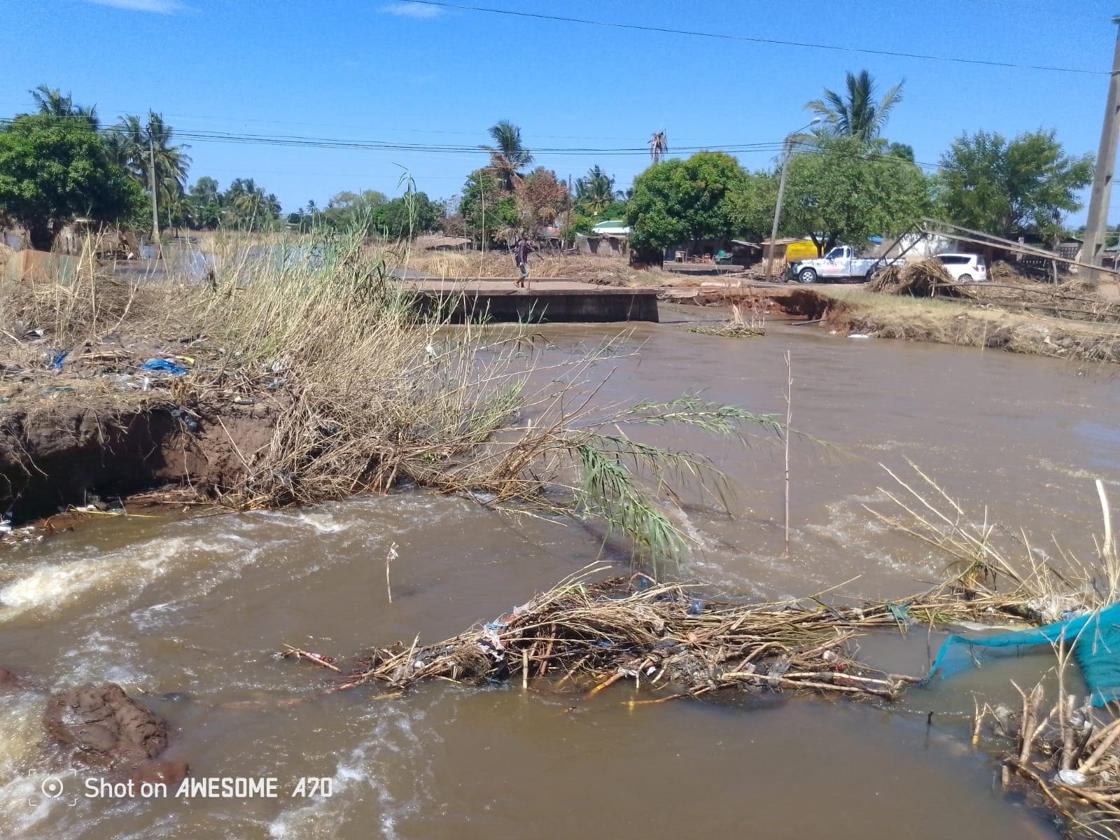 Trata-se de um dos cursos de água decorrente do transbordo do rio Limpopo, na sequência das recentes cheias e inundações, que afectaram aquela região e que ainda continua activo.
