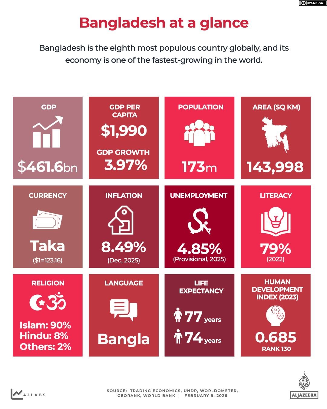 Com mais de 173 milhões de cidadãos, o Bangladesh é o oitavo país mais populoso do mundo e, ao longo dos últimos 25 anos, a sua economia tem sido uma das que mais cresce no mundo – embora o crescimento tenha arrefecido nos últimos anos.