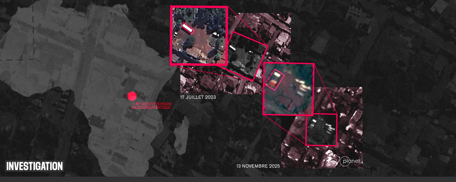 Esta prática de confinamento foi documentada pela RSF através de vários depoimentos de pessoas detidas durante o ano de 2025, anonimizados por razões de segurança. Segundo informações recolhidas, pelo menos dois jornalistas foram encerrados nestes contentores instalados em locais controlados por membros do grupo armado. Graças a intercâmbios com diversas fontes, consulta de fotos de satélite e imagens exclusivas, a RSF conseguiu confirmar a presença destas estruturas nos terrenos da Assembleia Provincial do Kivu do Norte em Goma, o órgão legislativo da província, que o M23 apreendeu após a captura da cidade em Janeiro de 2025.