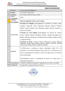 INAM EMITE AVISO DE CHUVAS MODERADAS A FORTES COM TROVOADAS NO NORTE DO PAÍS