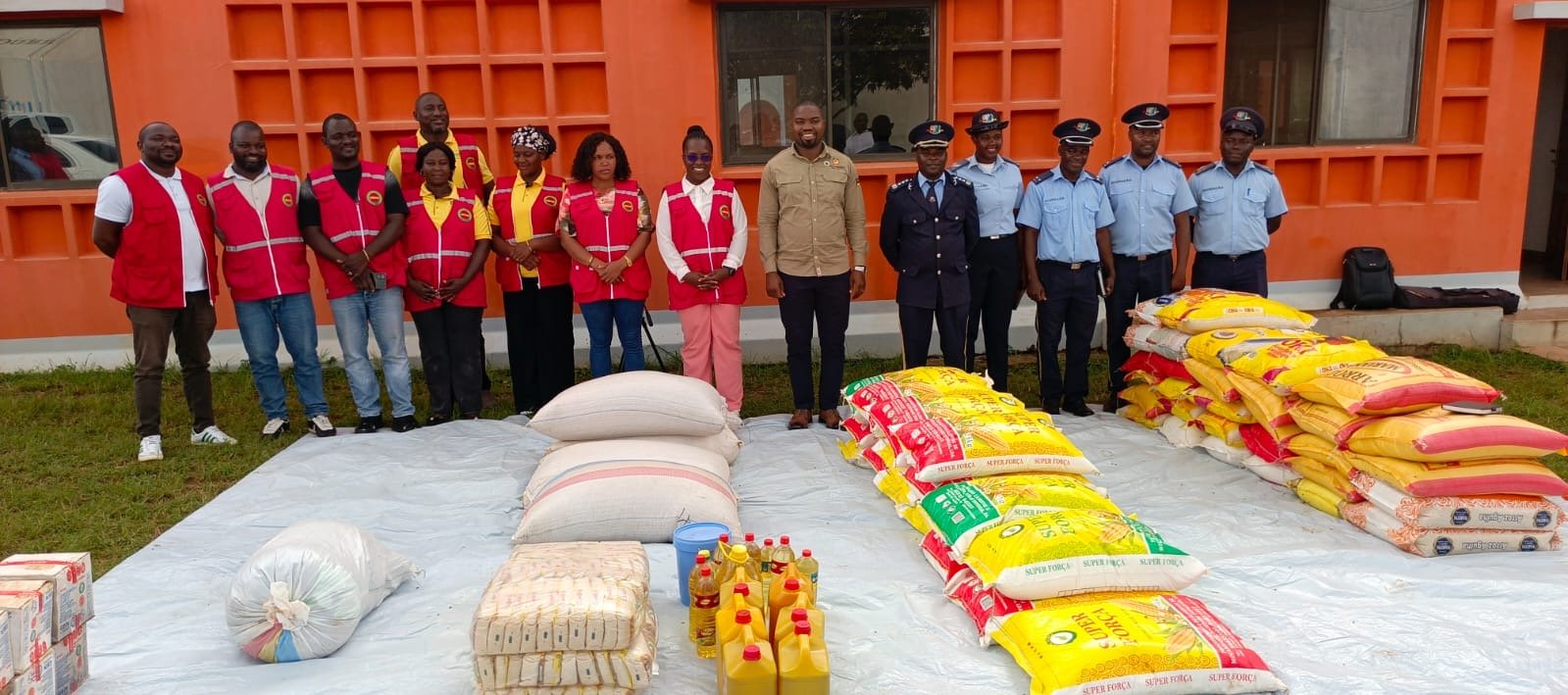 Entre os produtos entregues constam arroz, farinha, feijão, óleo alimentar, sal, sabão, bem como roupa usada, reunidos no âmbito de uma acção solidária promovida pelos funcionários da instituição.