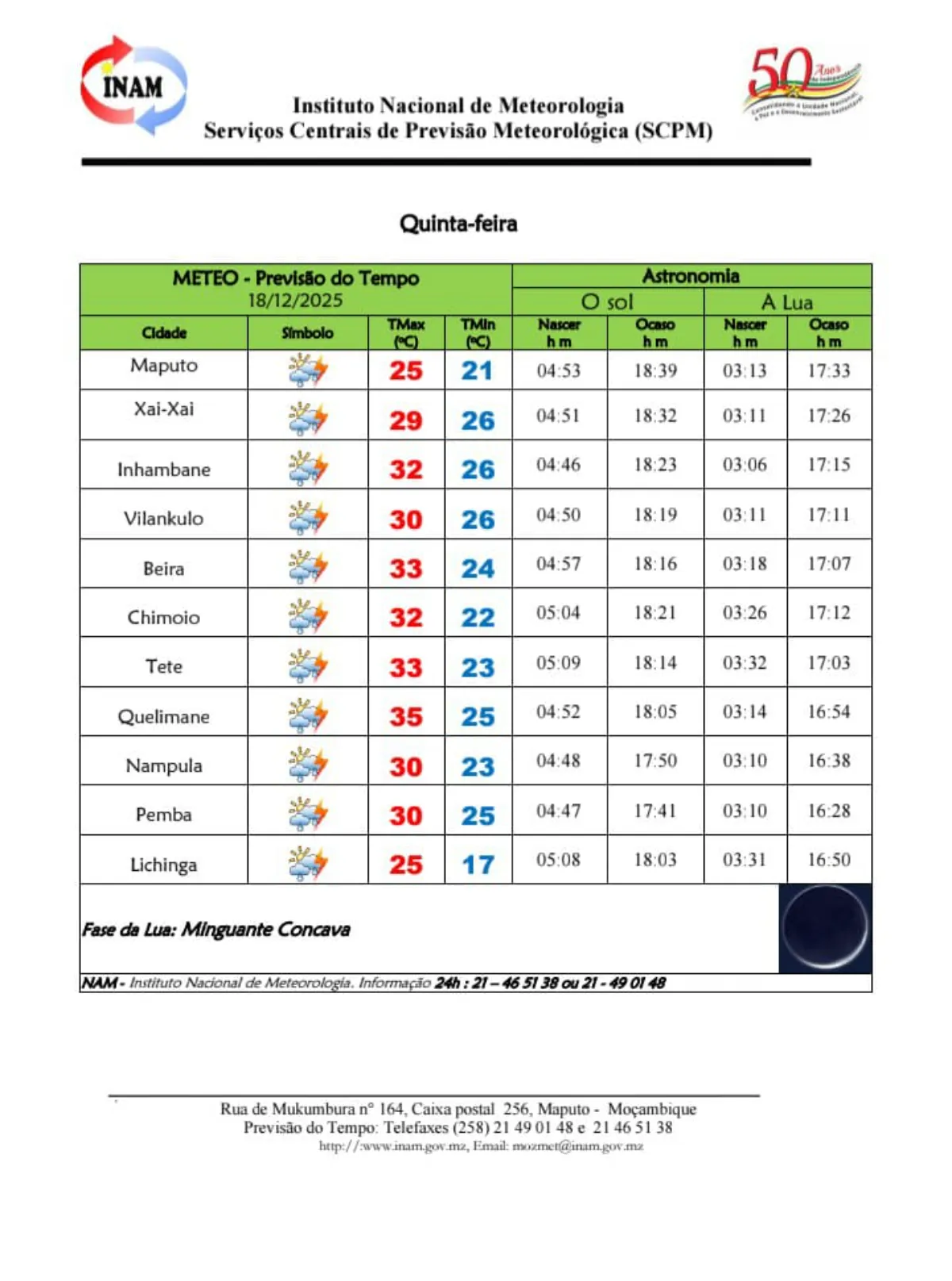 Fonte oficial: Instituto Nacional de Meteorologia (INAM)